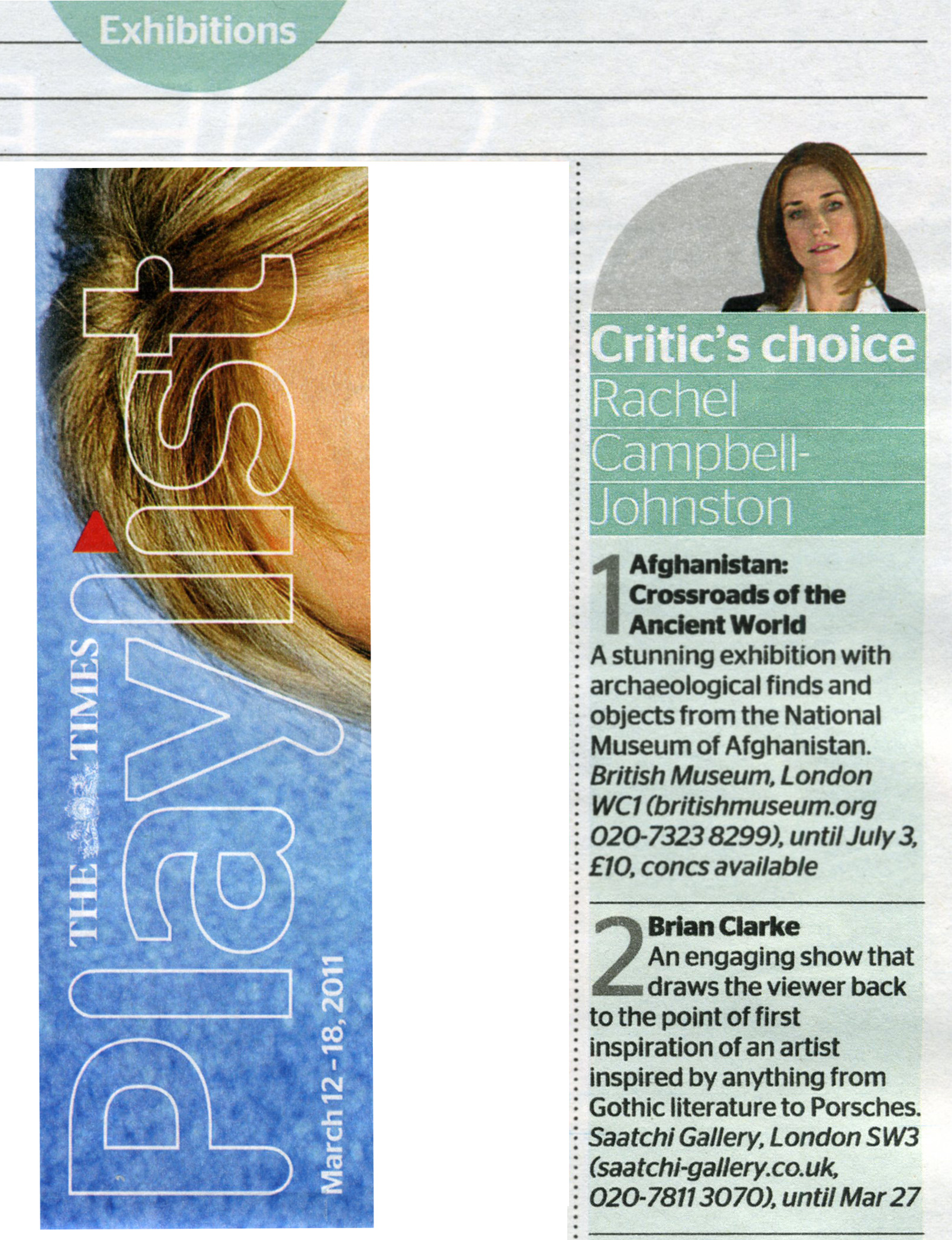 Saturday Time's Rachel Campbell-Johnston places the Brian Clarke show at the Saatchi Gallery, London in top five Critics Choice art shows.